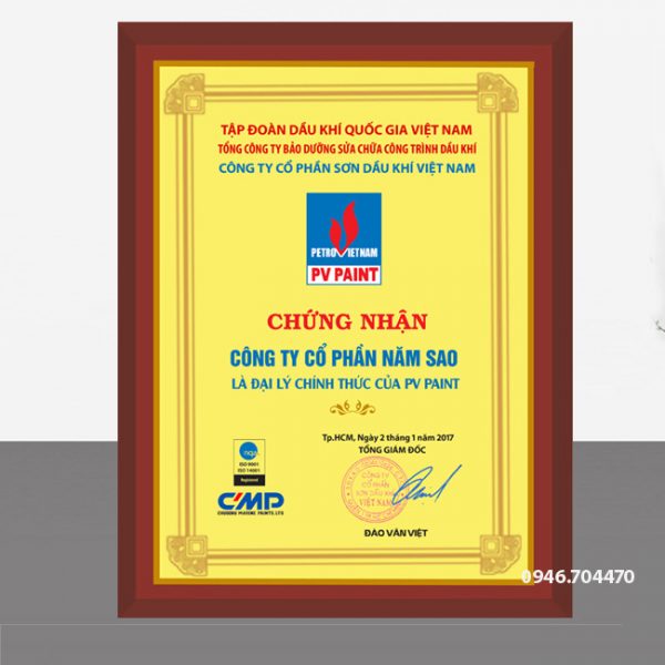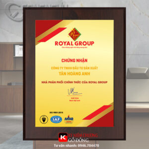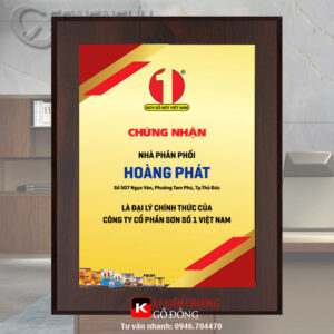 Bảng chứng nhận đại lý 27cm x 37cm được làm từ khung gỗ, mặt nội dung bằng đồng, nội dung làm theo yêu cầu khách hàng. Bảng chứng nhận đại lý, mẫu mã rất đa dạng, tặng được nhiều sự kiện.