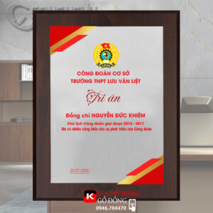 Bảng tri ân lãnh đạo cao cấp được làm từ khung gỗ, kim loại. Nội dung đặt trên tấm kim loại. Thiết kế làm theo yêu cầu riêng của khách hàng. Bảng tri ân lãnh đạo cao cấp với mẫu mã rất đa dạng, kích thước riêng theo yêu cầu của khách hàng.