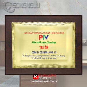 Bảng vàng tri ân đối tác được làm từ khung gỗ, mặt nội dung bằng đồng, nội dung làm theo yêu cầu khách hàng. Bảng vàng tri ân đối tác, mẫu mã rất đa dạng, tặng được nhiều sự kiện.