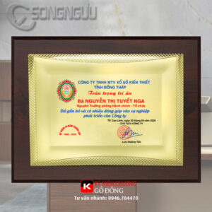 Bảng vàng tri ân nhân viên được làm từ khung gỗ, mặt nội dung bằng đồng, nội dung làm theo yêu cầu khách hàng. Bảng vàng tri ân nhân viên, mẫu mã rất đa dạng, tặng được nhiều sự kiện.
