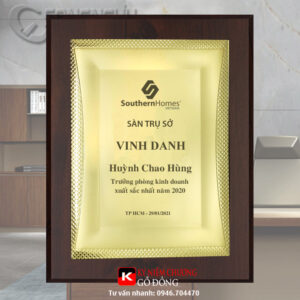 Bảng vinh danh nhân viên cao cấp được làm từ khung gỗ, mặt nội dung bằng đồng, nội dung làm theo yêu cầu khách hàng. Bảng vinh danh nhân viên cao cấp, mẫu mã rất đa dạng, tặng được nhiều sự kiện.