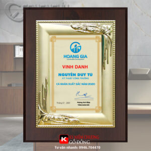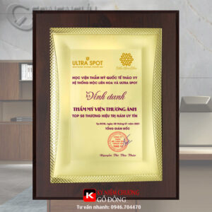Bảng vinh danh vàng được làm từ khung gỗ, mặt nội dung bằng đồng, nội dung làm theo yêu cầu khách hàng. Bảng vinh danh vàng, mẫu mã rất đa dạng, tặng được nhiều sự kiện.