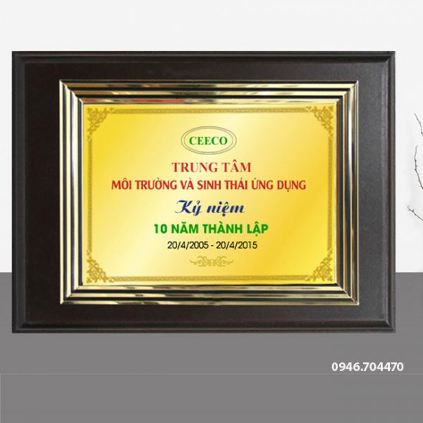 Biểu trưng gỗ đồng lưu niệm 23cm x 30cm được làm từ khung gỗ, mặt nội dung bằng đồng, nội dung làm theo yêu cầu khách hàng. Biểu trưng gỗ đồng lưu niệm 23cm x 30cm với mẫu mã rất đa dạng, tặng được nhiều sự kiện.