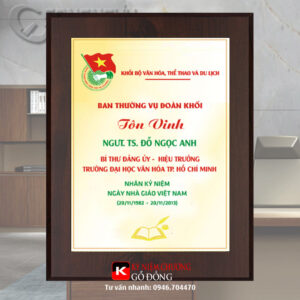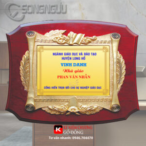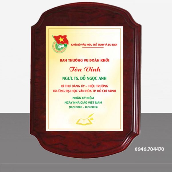 Biểu trưng tôn vinh gỗ đồng được làm từ khung gỗ, mặt nội dung bằng đồng, nội dung làm theo yêu cầu khách hàng. Biểu trưng tôn vinh gỗ đồng , mẫu mã rất đa dạng, tặng được nhiều sự kiện.