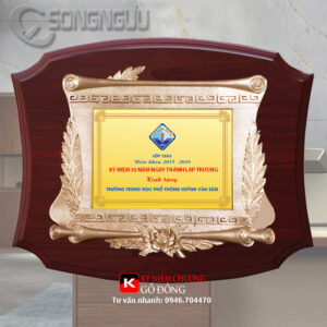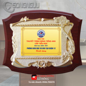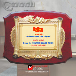 - Kỷ niệm chương gỗ đồng làm từ gỗ MDF sơn PU màu nâu đậm