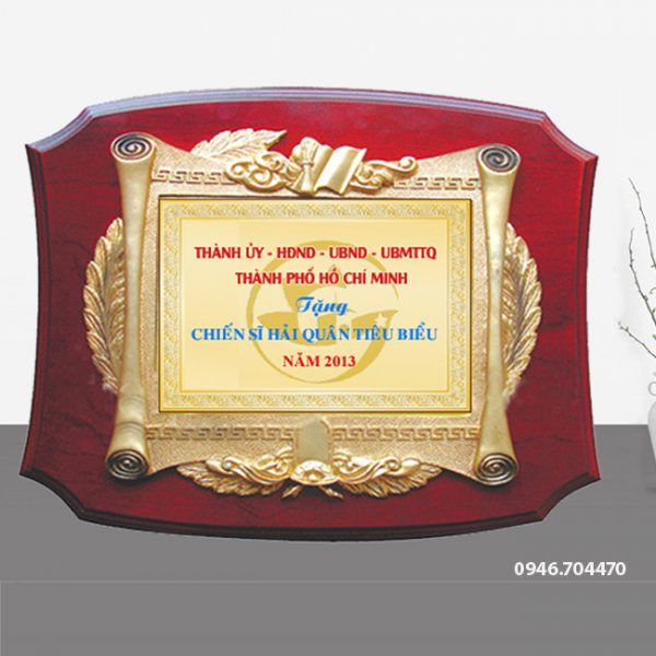 Biểu trưng tặng chiến sĩ hải quân được làm từ khung gỗ, mặt nội dung bằng đồng, nội dung làm theo yêu cầu khách hàng. Biểu trưng tặng chiến sĩ hải quân, mẫu mã rất đa dạng, tặng được nhiều sự kiện.