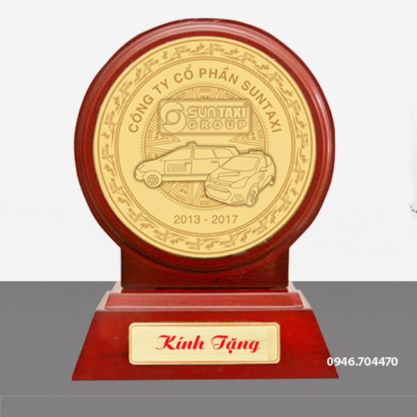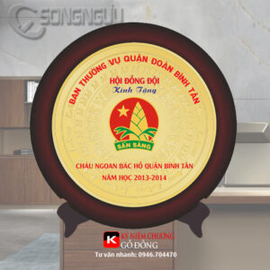- Kỷ niệm chương gỗ đồng làm từ gỗ MDF sơn PU màu nâu đậm