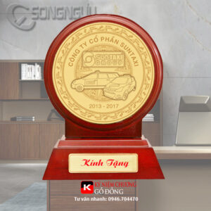 - Kỷ niệm chương gỗ đồng làm từ gỗ MDF sơn PU màu nâu đậm