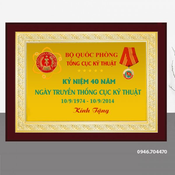Kỷ niệm chương gỗ đồng kỷ niệm được làm từ khung gỗ, mặt nội dung bằng đồng, nội dung làm theo yêu cầu khách hàng. Kỷ niệm chương gỗ đồng kỷ niệm, mẫu mã rất đa dạng, tặng được nhiều sự kiện.