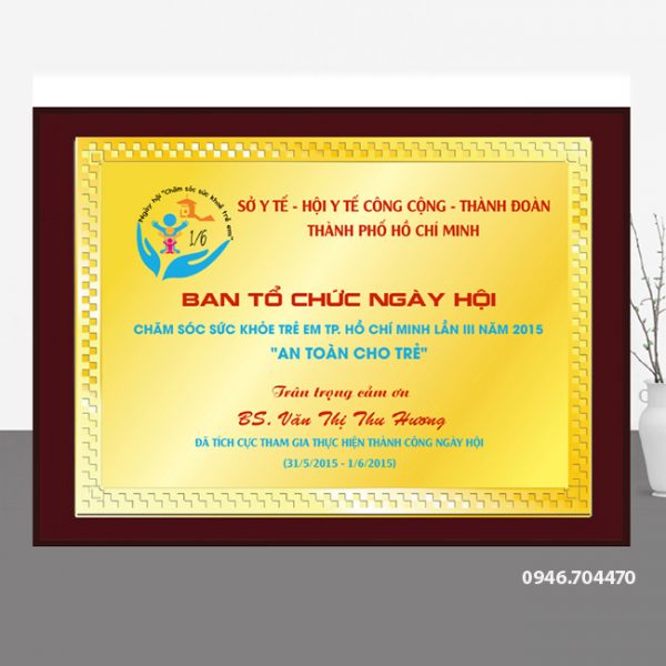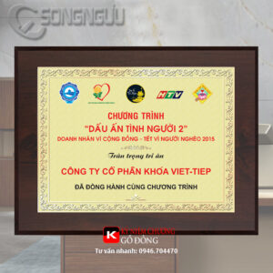 Biểu trưng trân trọng cảm ơn được làm từ khung gỗ, mặt nội dung bằng đồng, nội dung làm theo yêu cầu khách hàng. Biểu trưng trân trọng cảm ơn, mẫu mã rất đa dạng, tặng được nhiều sự kiện.
