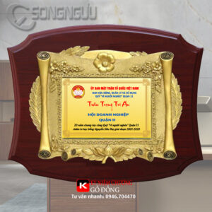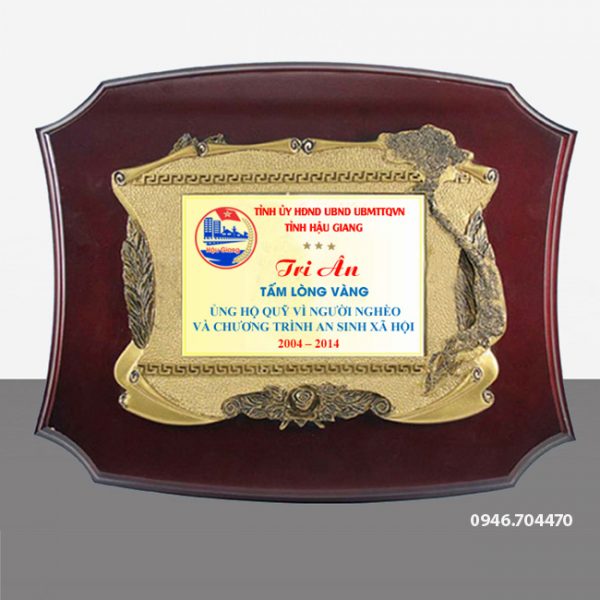 Biểu trưng tri ân gỗ đồng được làm từ khung gỗ, mặt nội dung bằng đồng, nội dung làm theo yêu cầu khách hàng. Biểu trưng tri ân gỗ đồng, mẫu mã rất đa dạng, tặng được nhiều sự kiện.