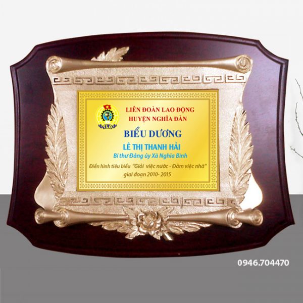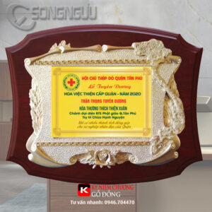 Kỷ niệm chương biểu dương gỗ đồng được làm từ khung gỗ, mặt nội dung bằng đồng, nội dung làm theo yêu cầu khách hàng. Kỷ niệm chương biểu dương gỗ đồng, mẫu mã rất đa dạng, tặng được nhiều sự kiện.