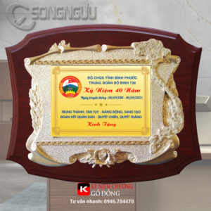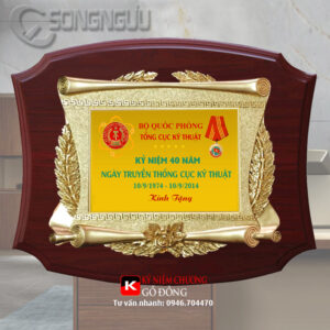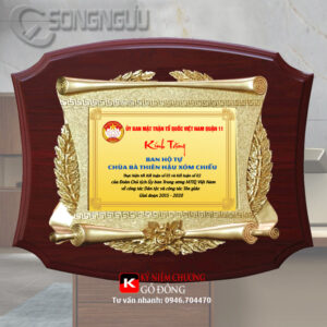 - Kỷ niệm chương gỗ đồng làm từ gỗ MDF sơn PU màu nâu đậm