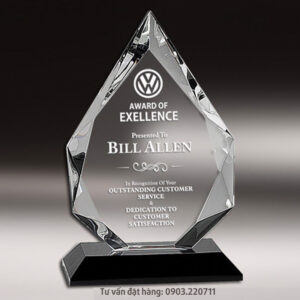 Kỷ niệm chương khen thưởng cá nhân được làm từ pha lê trong, phối thêm các màu khác theo yêu cầu, nội dung khắc hoặc in trực tiếp. Kỷ niệm chương khen thưởng cá nhân phù hợp tặng cá nhân, nhân viên xuất sắc trong các sự kiện, tổng kết cuối năm. Kỷ niệm chương pha lê có kích thước mẫu mã rất đa dạng và nội dung theo yêu cầu riêng.