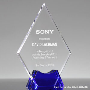 Kỷ niệm chương khen thưởng cá nhân, kỷ niệm chương tri ân, kỷ niệm chương vinh danh, kỷ niệm chương lưu niệm được làm từ pha lê trong, phối thêm các màu khác theo yêu cầu riêng. Kỷ niệm chương khen thưởng cá nhân dùng làm quà tặng khen thưởng, vinh danh cá nhân xuất sắc. Sản phẩm có kích thước mẫu mã rất đa dạng và nội dung khắc hoặc in trực tiếp.