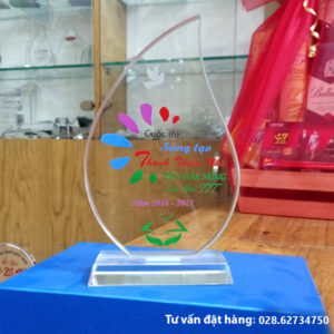 Kỷ niệm chương thi đua dùng làm quà tặng trao thưởng trong những cuộc thi. Sản phẩm cao 20cm được làm từ thủy tinh hoặc pha lê, nội dung in khắc trực tiếp theo yêu cầu riêng từng sự kiện. Kỷ niệm chương thi đua với mẫu mã đa dạng, kích thước có thể thay đổi.