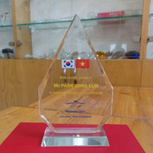 - Chất liệu kỷ niệm chương: pha lê hoặc thủy tinh