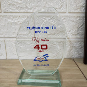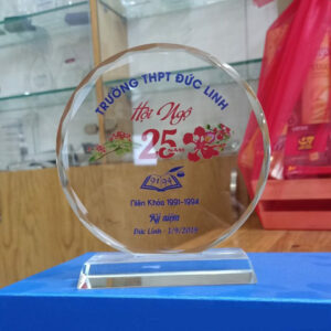 Kỷ niệm chương lưu niệm họp lớp được làm từ thủy tinh hoặc pha lê. Sản phẩm phù hợp làm quà tặng lưu niệm họp lớp, kỷ niệm ngày ra trường. Nội dung in khắc trực tiếp theo yêu cầu riêng từng sự kiện. Kỷ niệm chương lưu niệm họp lớp đa dạng về mẫu mã, có nhiều kích thước khác nhau.