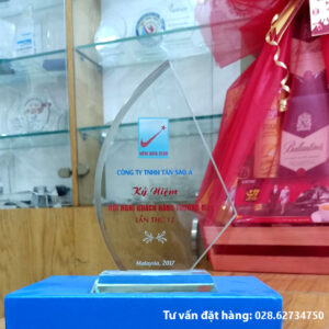 Kỷ niệm chương tặng khách hàng được làm từ thủy tinh trong, phối thêm các màu khác theo yêu cầu, nội dung khắc hoặc in trực tiếp. Kỷ niệm chương tặng khách hàng, mẫu mã rất đa dạng và nội dung theo yêu cầu riêng. Sản phẩm phù hợp dùng làm lưu niệm, tri ân, vinh danh đối tác, khách hàng.