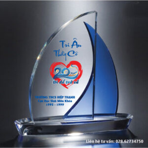 Quà tặng cánh buồm tri ân được làm từ thủy tinh trong, phối thêm các màu khác theo yêu cầu, nội dung khắc hoặc in trực tiếp. Quà tặng cánh buồm tri ân, có kích thước, mẫu mã rất đa dạng và nội dung theo yêu cầu riêng. Sản phẩm phù hợp dùng làm lưu niệm, tri ân trong các sự kiện, các dịp họp mặt..
